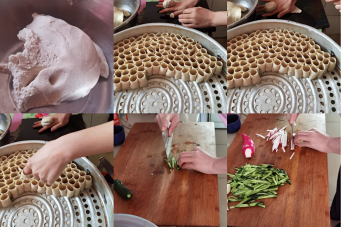 20级金融学积极分子乔亚娟,在五一期间给学做一道家乡菜,虽然不是很熟练,但是在妈妈的悉心教导下她还是学会了如何做这道菜——莜面蘸冷腌汤(就是一种凉汤不是热汤)。