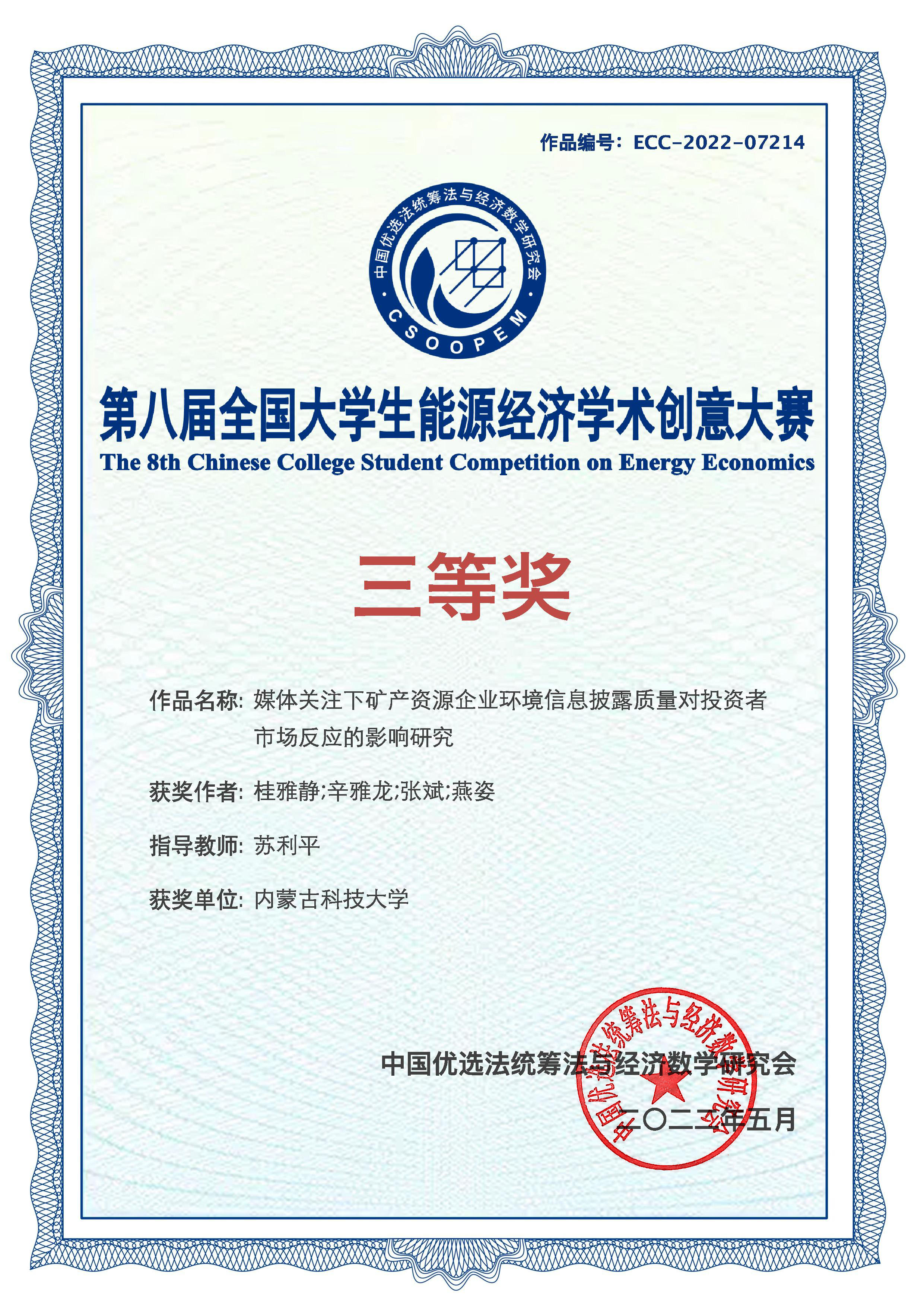 下一条:永利集团304官网师生荣获第八届全国老员工能源经济学术创意大赛第5赛区-老员工队三等奖